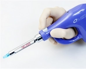 電動注射器を使えば、細い針でもゆっくりと麻酔液を注入することが出来るので、
